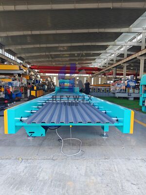 The production process of the C21 roll forming machine is fully automated. It includes a decoiler for loading the metal coil, a feeding and leveling system, multiple roll forming stations that gradually shape the material, and a hydraulic cutting system for precise length control. The PLC control system ensures accurate operation, allowing users to set sheet length and quantity easily.