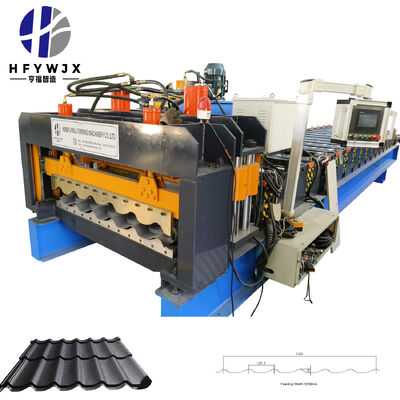 The 1100 partial arc roll forming machine consists of three key functional parts. The roller forming part is driven by a motor, with a chain transmission system to drive each roller to rotate, ensuring continuous and stable feeding of colored steel. The hydraulic cylinder in the pressing part drives the mold to move up and down, pressing the colored steel into multi-section glazed tile shapes. The cutting part, driven by a hydraulic cylinder, moves up and down to cut the formed colored steel tiles, completing the production from raw material to finished product.